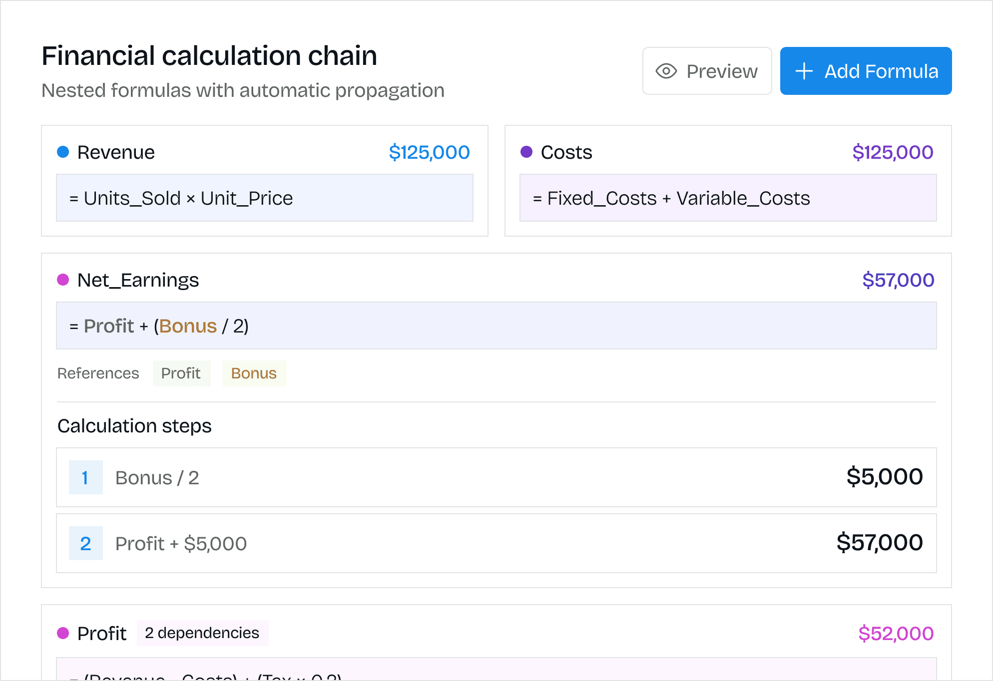 Nested formulas