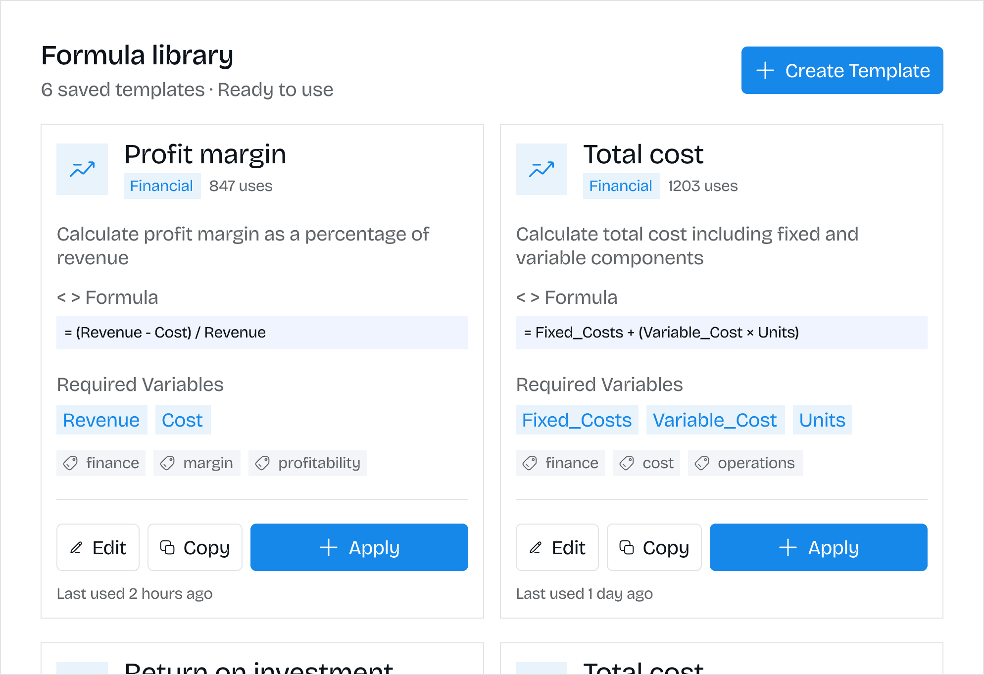 Template formulas