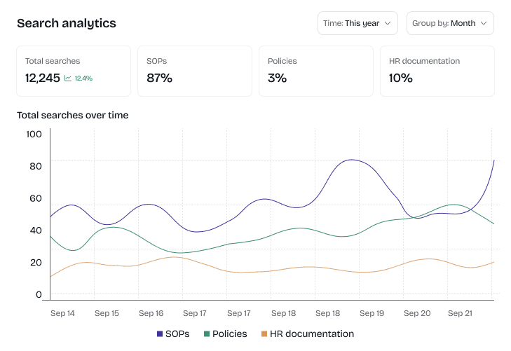 Track which documents are viewed most, identify knowledge gaps, and understand how teams interact with your knowledge base.