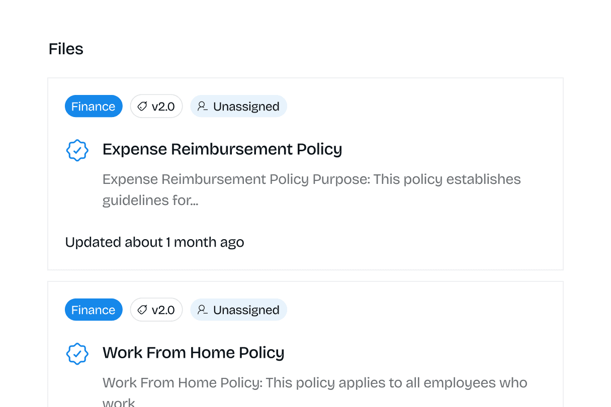 You can create policy documents (e.g. HR policies, safety manuals) and use version control on them. It automates policy sign-offs: employees are prompted to read and electronically acknowledge policies, with the system logging their compliance.