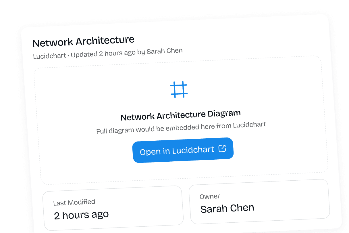 Embed architecture diagrams from Lucidchart, Draw.io, or other popular tools.