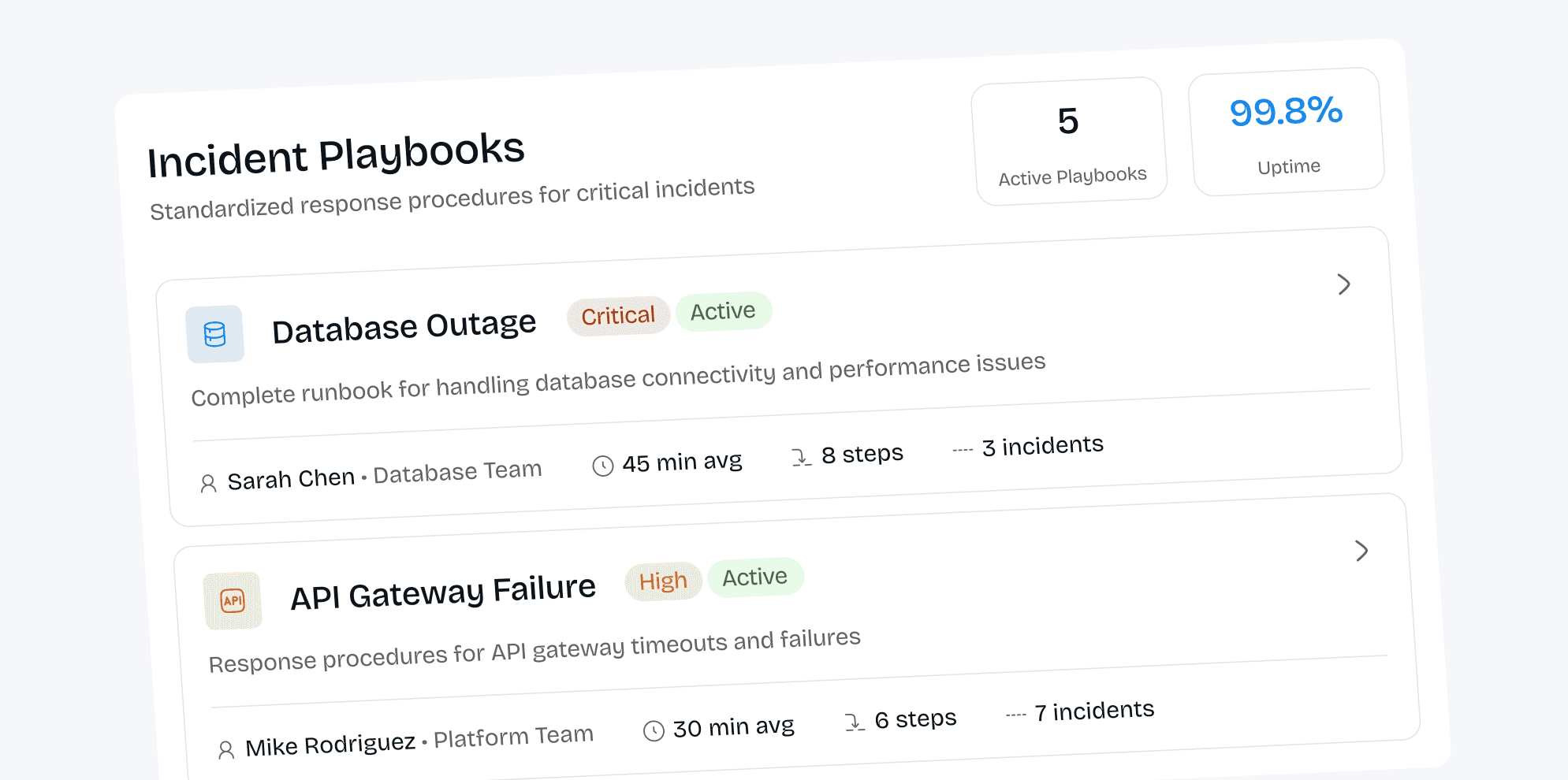 Host playbooks for outages, escalations, and postmortems. Track updates and assign ownership.
